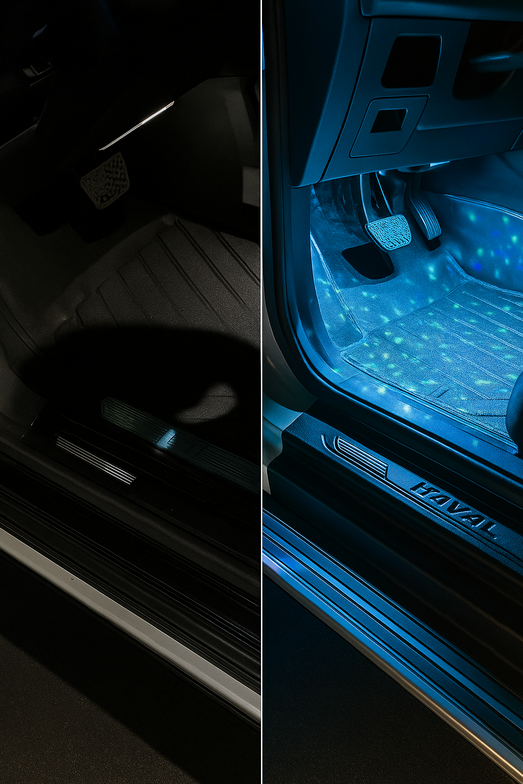 Glowly™ pozwala całkowicie odmienić wygląd Twojego auta. Dzięki 16 kolorom RGB możesz w prosty sposób podświetlić podłogę, sufit lub inne elementy wnętrza, tworząc wyjątkowy klimat podczas każdej podróży. Niezależnie od tego, czy chcesz dodać subtelne oświetlenie na co dzień, czy stworzyć efektowną, imprezową atmosferę – Glowly™ daje Ci pełną kontrolę nad stylem Twojego samochodu.